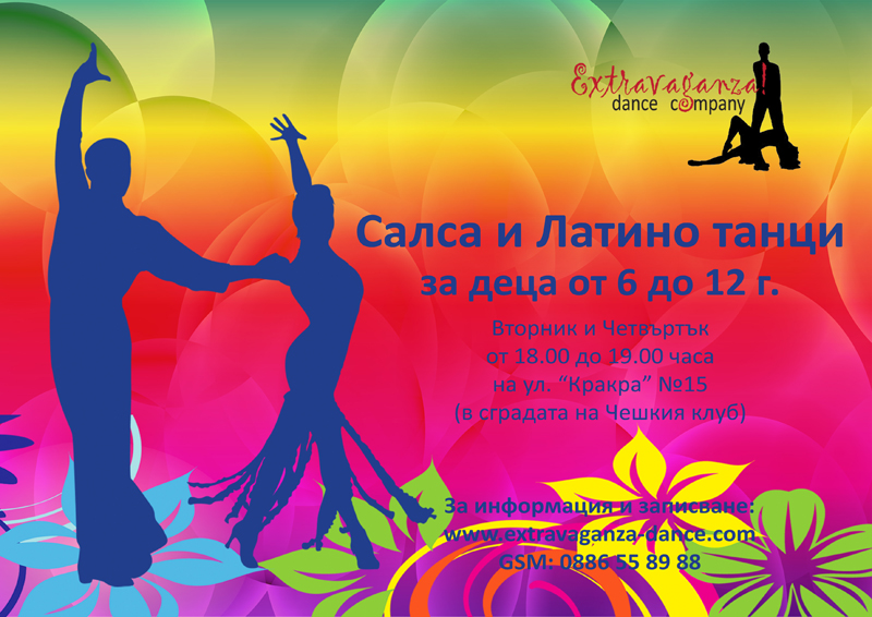 Нова начинаеща група за деца и юноши от 6 до 12 години стартира от 03.10.2017г.! Часовете ще се провеждат всеки вторник и четвъртък от 18.00 до 19.00 часа. Групата е с предварително записване на GSM 0886 55 89 88 или на e-mail: extravaganza.dance@abv.bg!