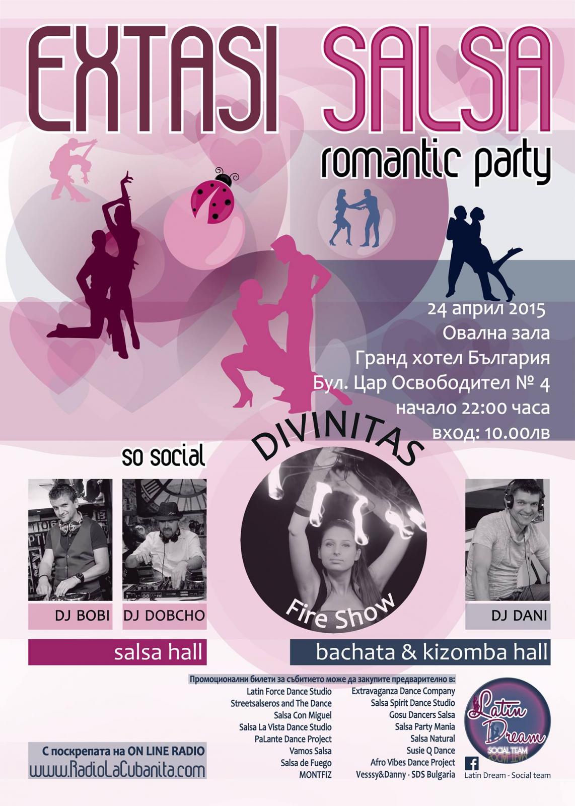 Изживейте неповторимо салса парти, съчетано с романтична бачата и кизомба зала.