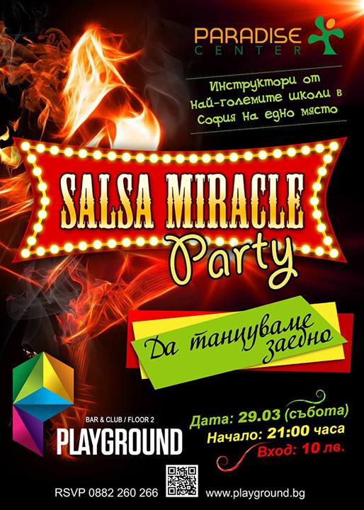 Заповядайте да танцуваме всички заедно на Salsa Miracle - събитие организирано от инструкторите на най-голeмите салса школи в София.