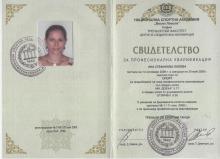 Диплома на Ана Лаова за Треньор по Спортни танци